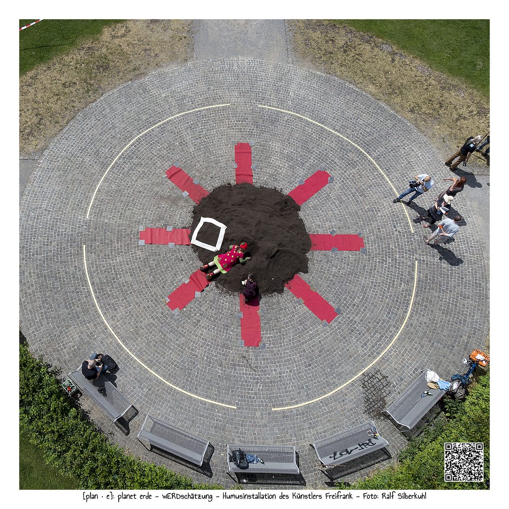 Als besondere Aktion hatte [plan · e] den Künstler Frank Fischer alias Freifrank aus Süddeutschland eingeladen, vier Kubikmeter Humus zentral auf dem Platz der Republik in Szene zu setzen, wie er es zum Geburtstag von Joseph Beuys am 12. Mai auf dem Odeonsplatz mitten in München schon getan hat.